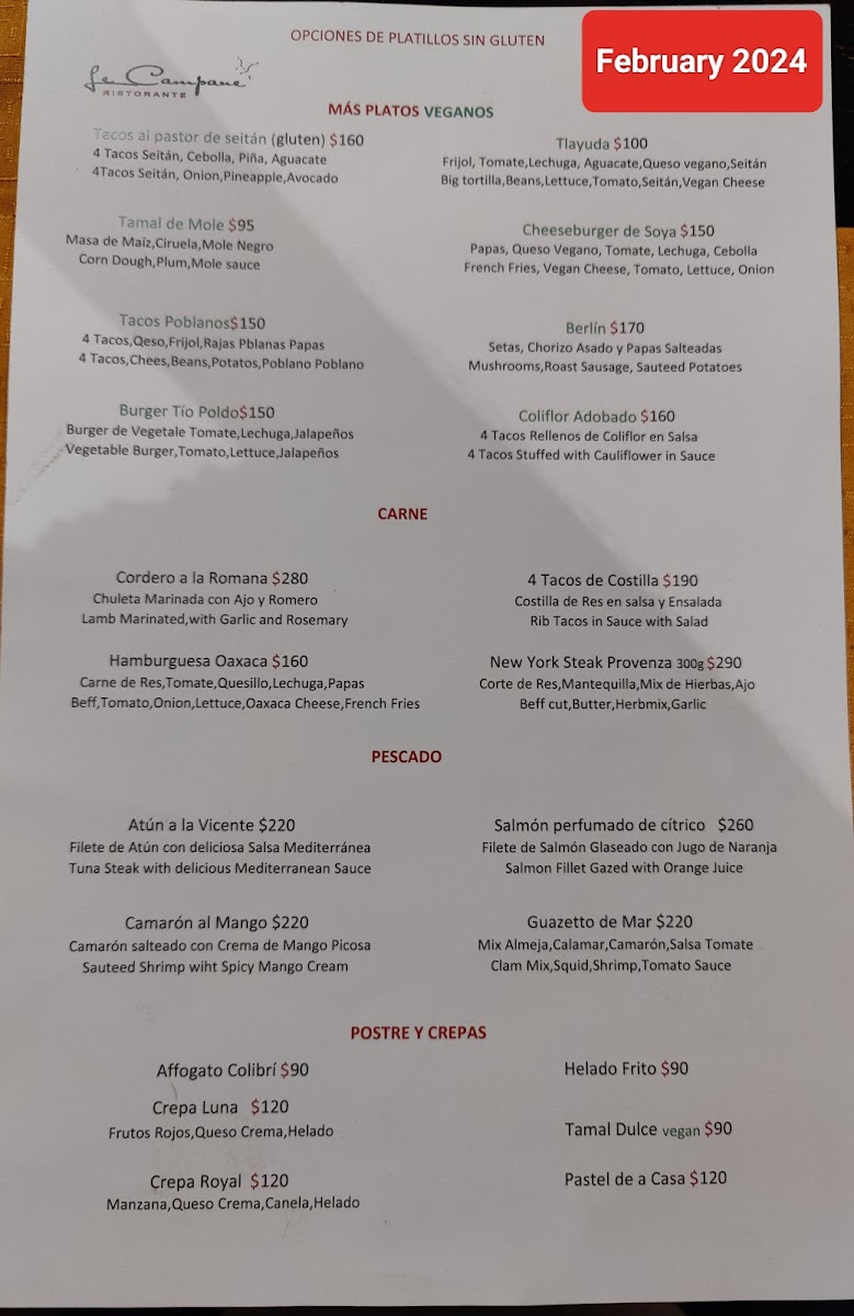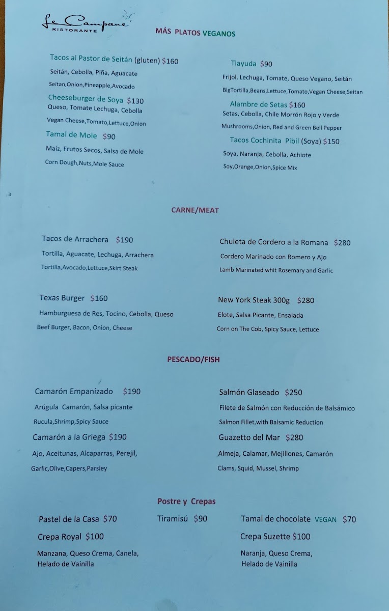 Welcome to Le Campane, a charming culinary gem nestled in the heart of Oaxaca de Juarez. This Italian ristorante specializes in a diverse menu that caters to all palates, boasting exceptional vegetarian and vegan options, as well as hearty meat selections. From savory tacos to vibrant salads and flavorful parrilladas, there’s something to excite every guest.